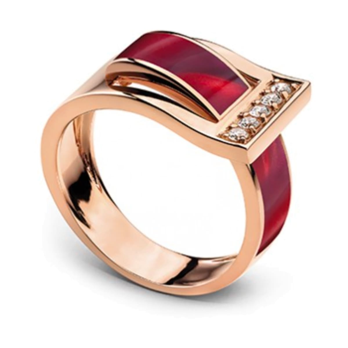 Les prix sont variables suivant le poids, la taille et le cours des matières premières.Bague résine rouge nacrée et diamants sur or rose