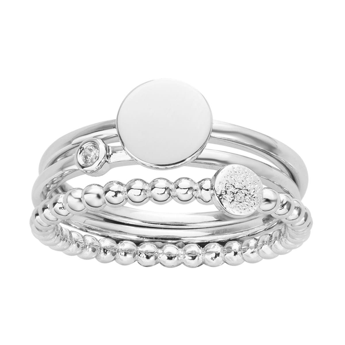 Joli bijou composé de 3 bagues. La première est délicatement perlée, la seconde est réhaussée d’un diamant et la troisième est pavé d’un fin cabochon plat. Ces anneaux sont tout à la fois singuliers et pluriels.