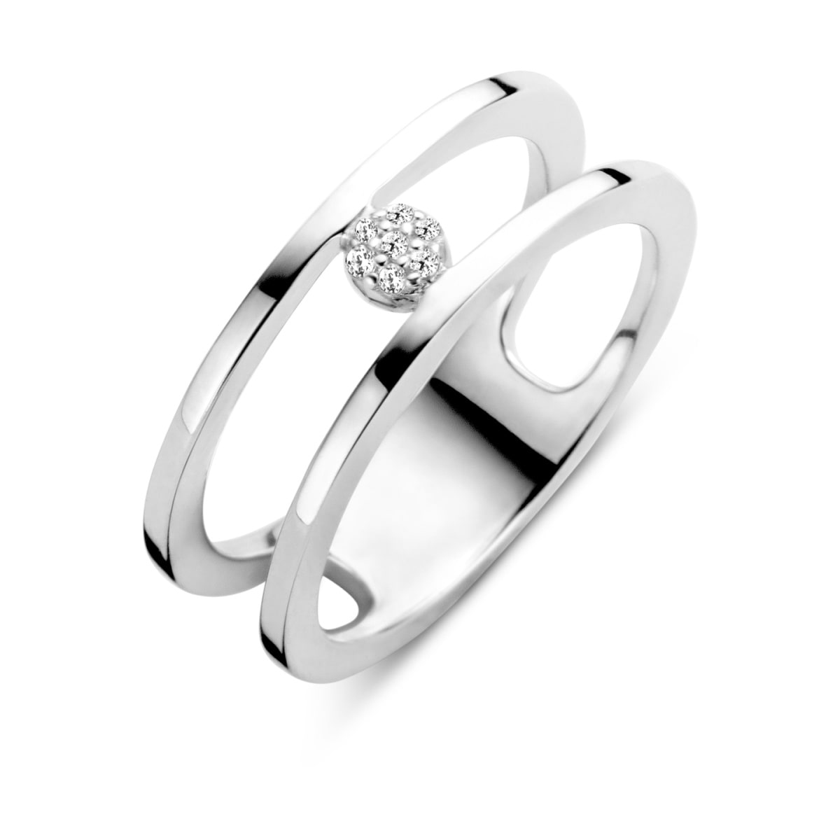 Structurée et moderne, on adore les lignes pures de cette bague argent et oxydes.