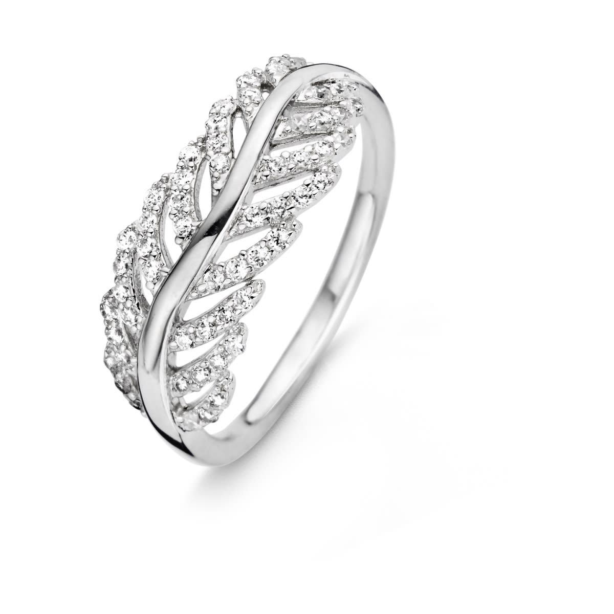 Jolie bague de la collection Naiomy Silver en argent et oxydes de zirconium blancs. On est séduit par son motif plume...