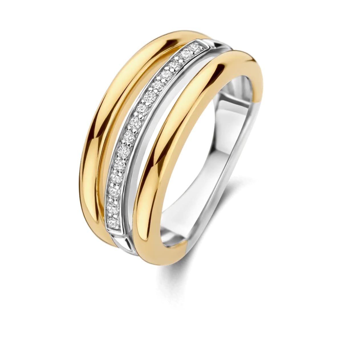 Révélez votre personnalité avec la bague bombée en argent plaqué or TI SENTO 12379SY, une pièce audacieuse en argent sterling 925 plaqué or jaune.