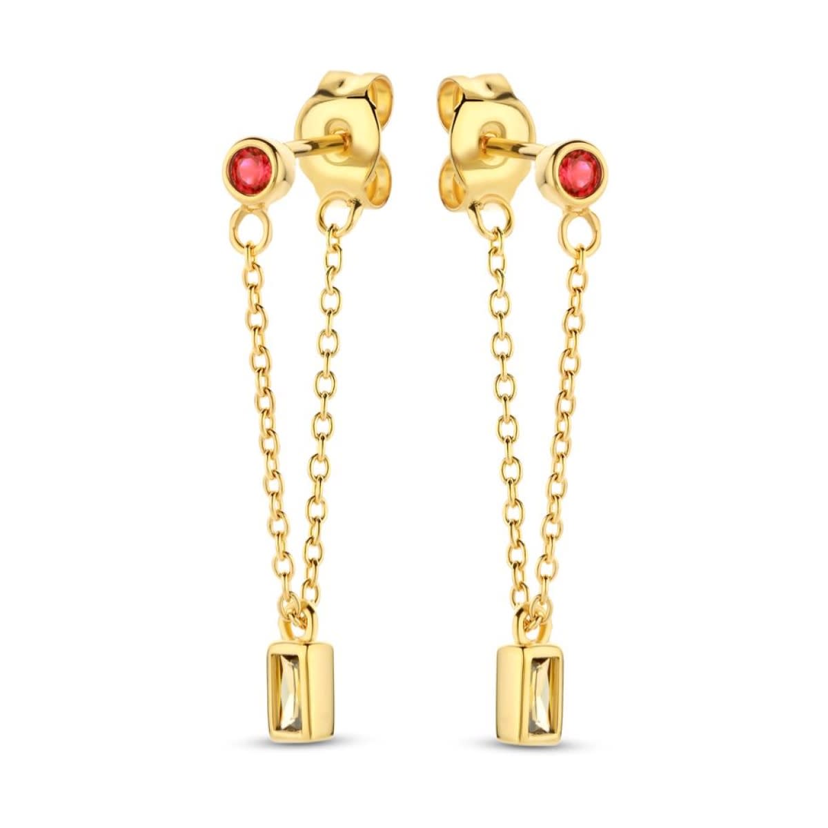 Les prix sont variables suivant le poids, la taille et le cours des matières premières.Boucles d’oreilles pendantes avec une chaines et ses pierres synthétiques verte et rouge