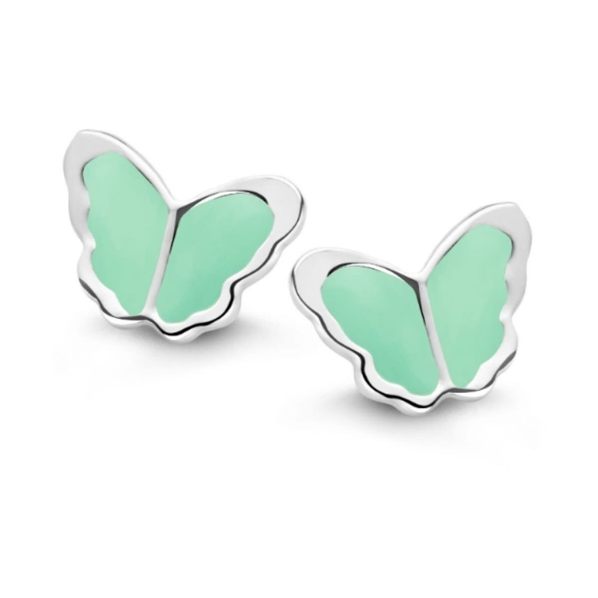 Les prix sont variables suivant le poids, la taille et le cours des matières premières.Boucles d’oreilles papillon en argent et laque vert d’eau
