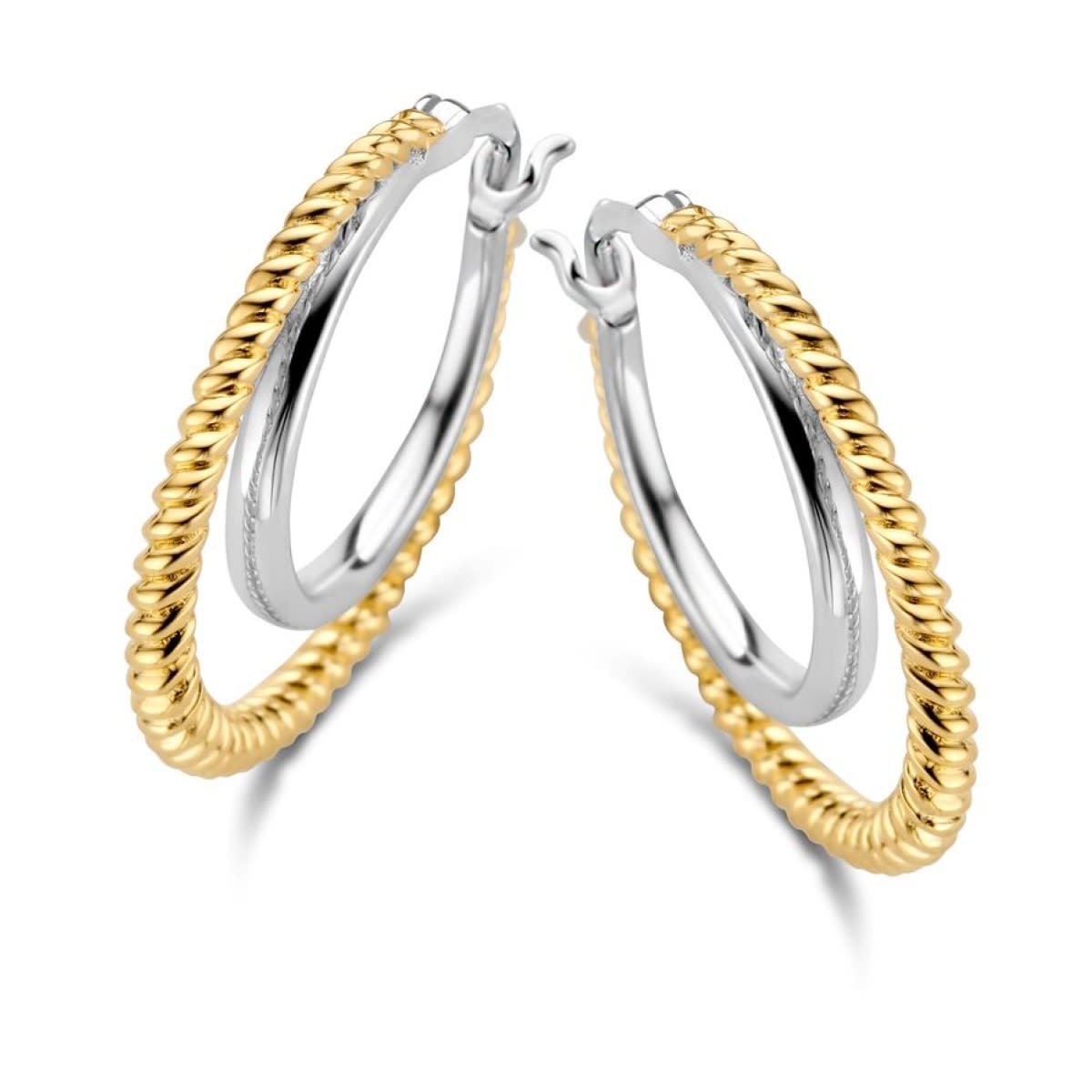 Les prix sont variables suivant le poids, la taille et le cours des matières premières.Boucles d’oreilles type créoles avec un anneau argent doré torsade et un anneau argent simple.