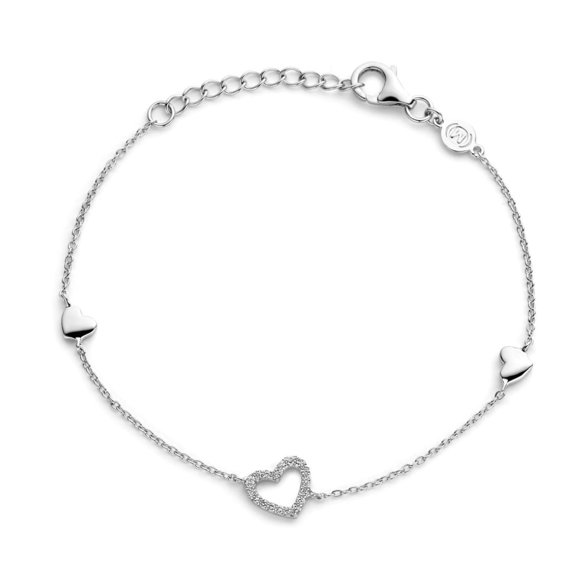 Les prix sont variables suivant le poids, la taille et le cours des matières premières.Bracelet en argent maille forçat avec une trilogie de cœurs dont le cœur central est serti d’oxydes de zirconium.