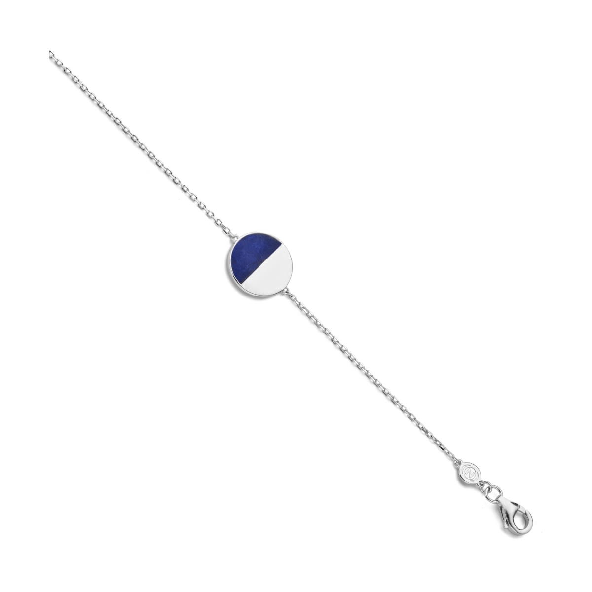 Bracelet tendance en argent rehaussé par un motif cercle pour moitié coloré d'un bleu profond.