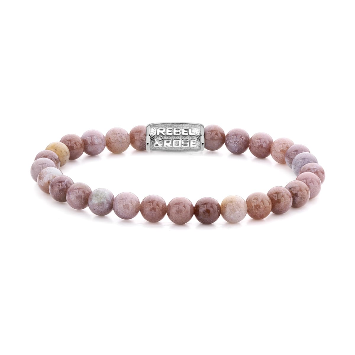 Les prix sont variables suivant le poids, la taille et le cours des matières premières.Bracelet REBEL & ROSE en perles de rhodonite polie, de 6mm de diamètre et son fermoir acier.