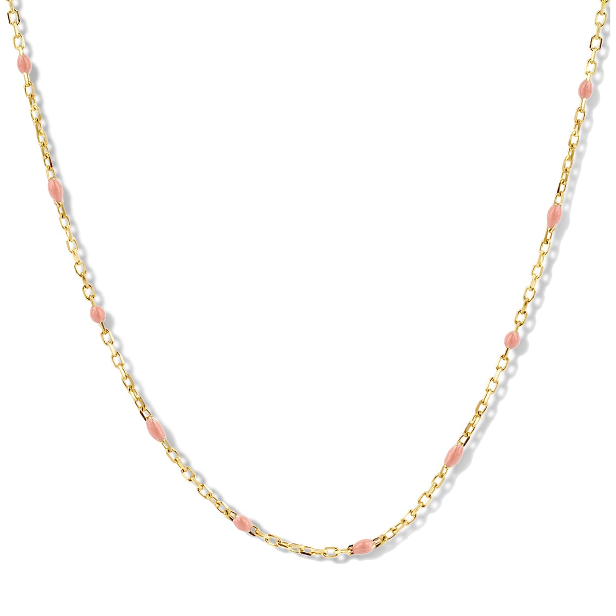 Les prix sont variables suivant le poids, la taille et le cours des matières premières.Collier NAIOMY MOMENTS en argent doré et petites boules en émail rose