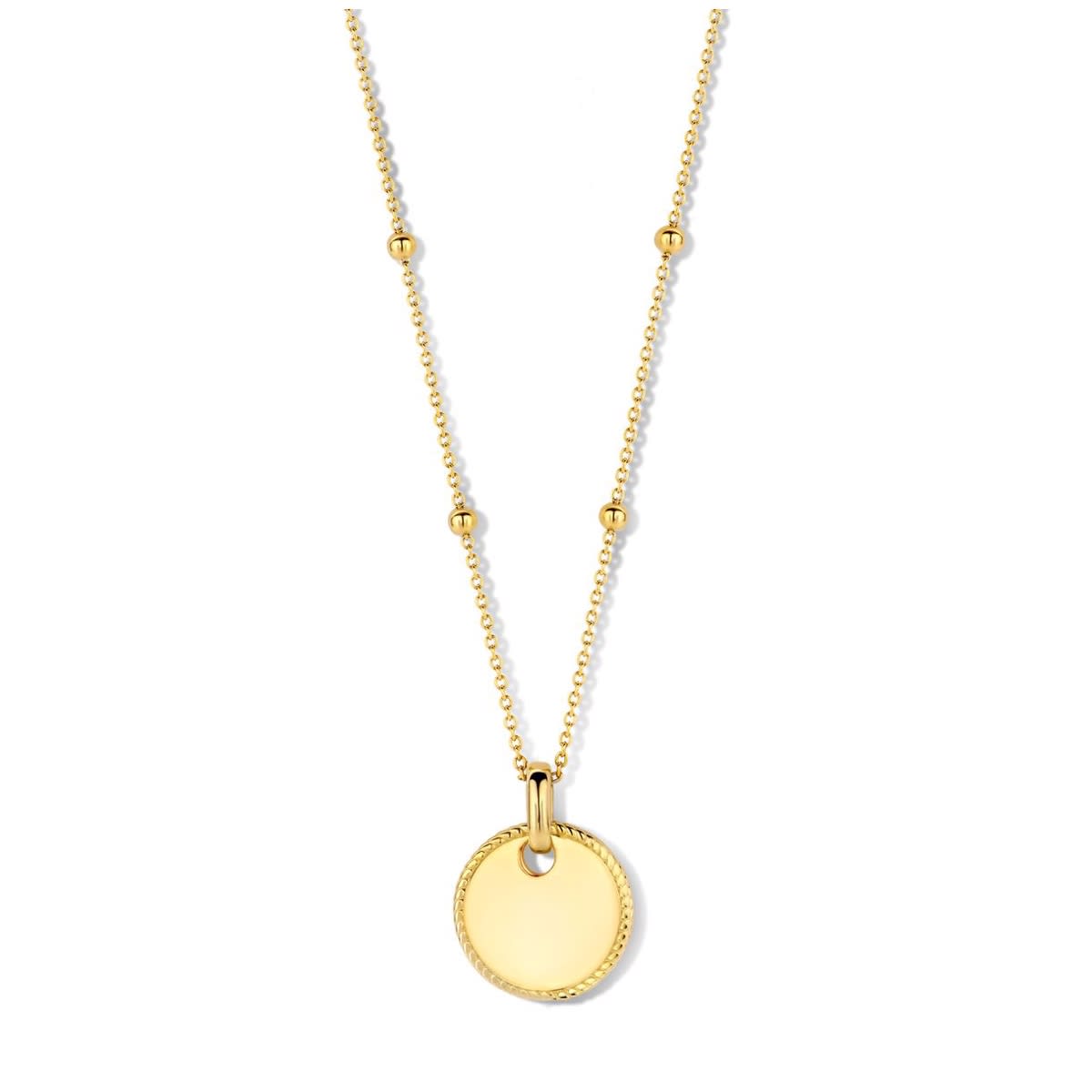 Collier avec boules et sa médaille aux bords perlés en argent doré.