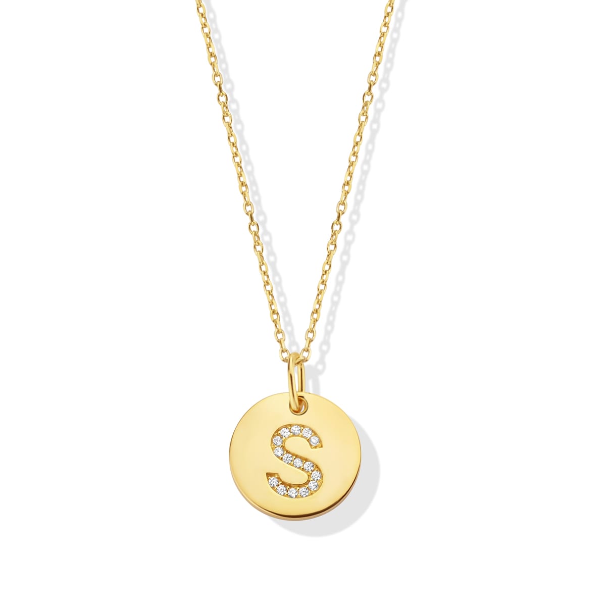 Les prix sont variables suivant le poids, la taille et le cours des matières premières.Collier en argent doré avec initiale S en oxydes de zirconium