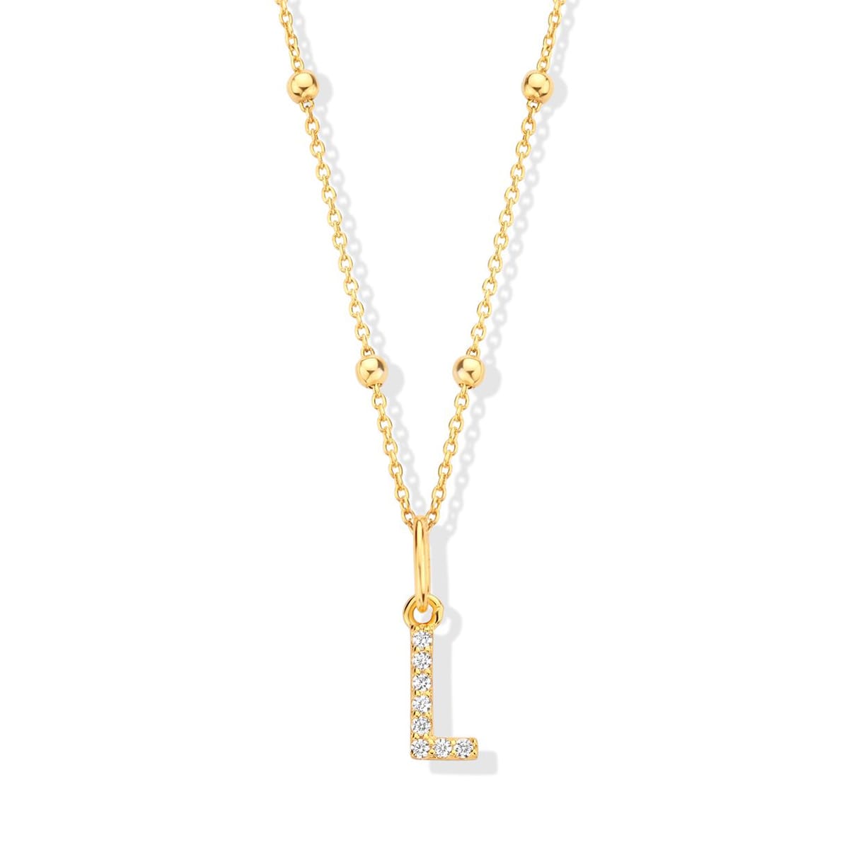 Les prix sont variables suivant le poids, la taille et le cours des matières premières.Collier NAIOMY MOMENTS en argent doré et son initiale en oxydes de zirconium