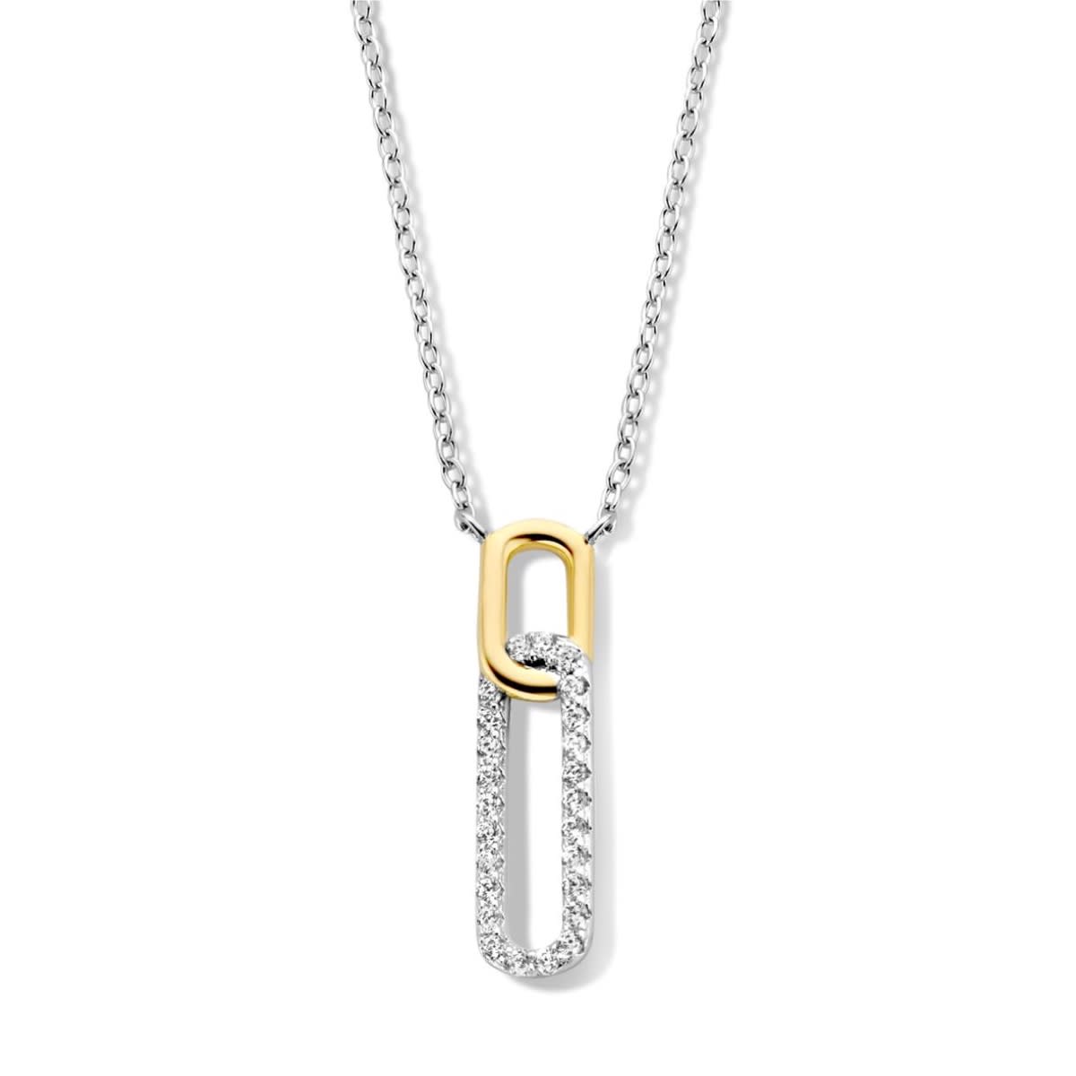 Collier avec un pendetif double en argent et argent doré serti d'oxyde de zirconium.