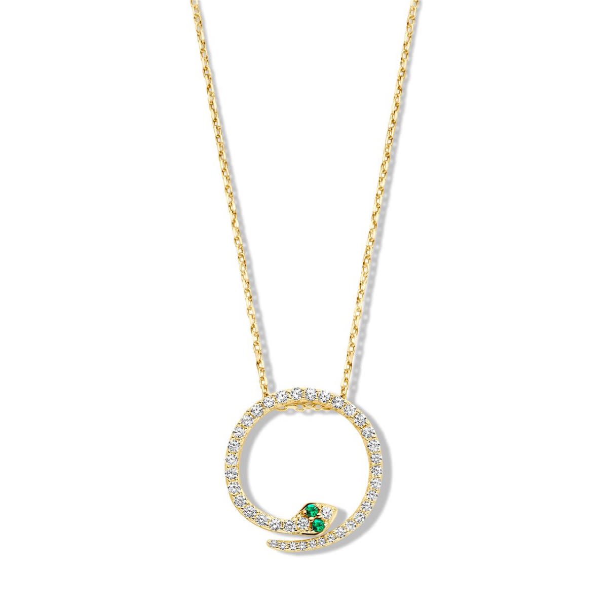 Les prix sont variables suivant le poids, la taille et le cours des matières premières.Collier maille forçat avec un pendentif serpent serti d’oxydes de zirconium blancs et verts pour les yeux.