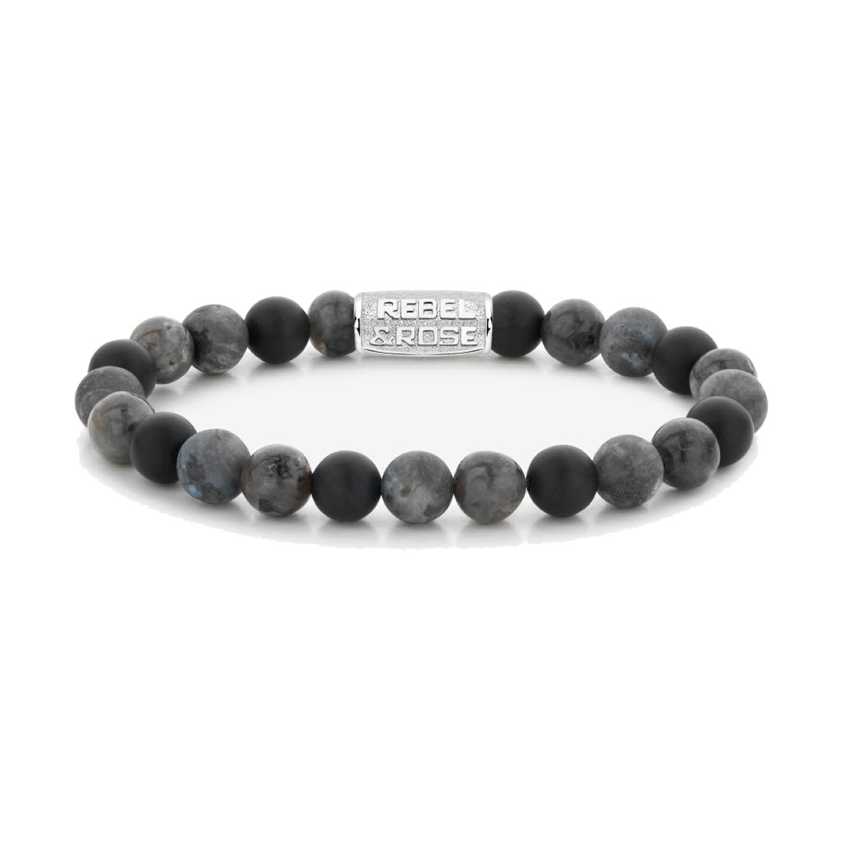 Bracelet REBEL & ROSE en perles de pierre de lave, de 8mm de diamètre, et son fermoir acier.