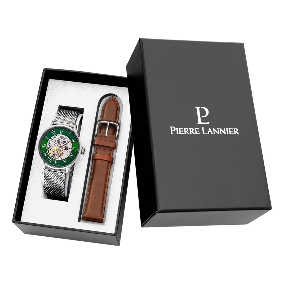 Prix de vente conseilléFaites plaisir avec le coffret montre automatique squelette verte 390C171 et son bracelet supplémentaire cuir marron !