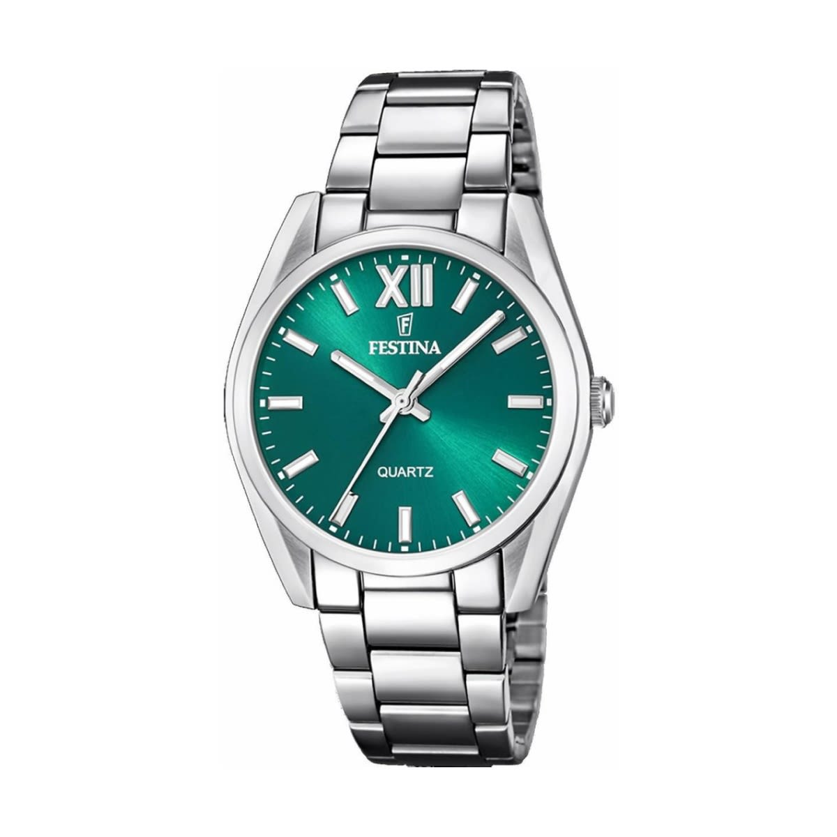 Prix de vente conseilléMontre Festina Femme Boyfriend en acier inoxydable, cadran vert foncé. Le bracelet acier maille.