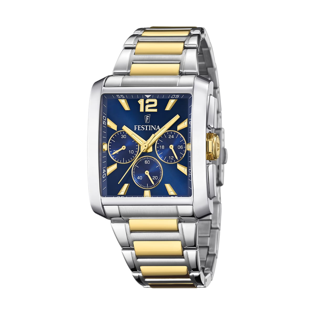Montre Festina Classique en acier inoxydable, boitier acier et cadran bleu clair avec dateur.