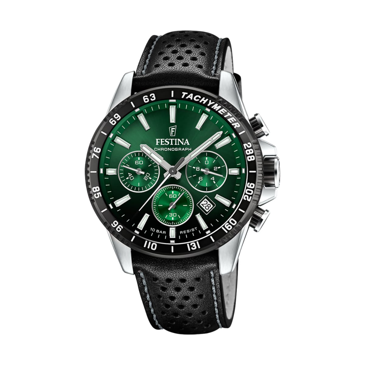 Montre Festina Classique en acier inoxydable avec chiffres noirs et dateur.