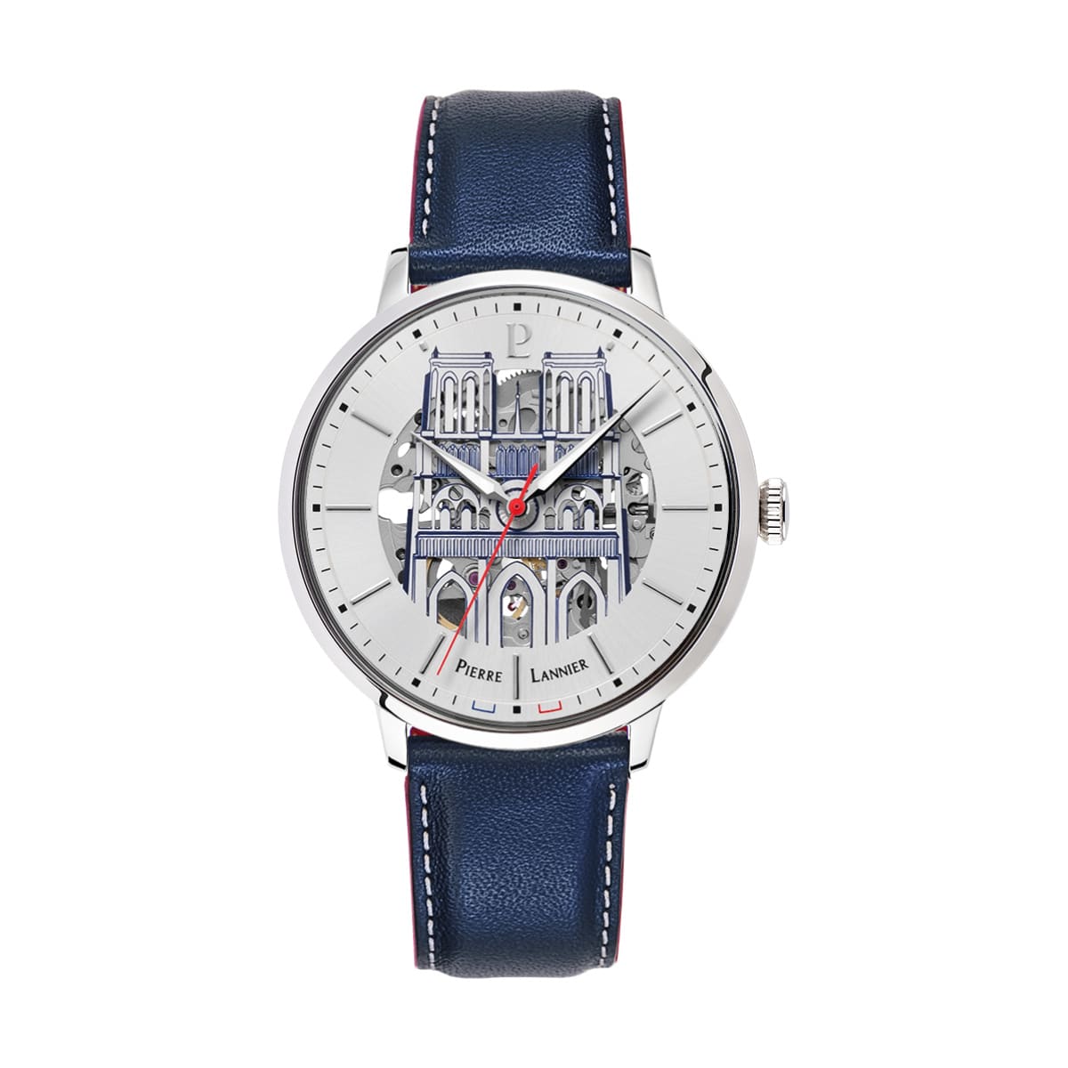 Imprégnée de l’âme de la cathédrale Notre-Dame de Paris, la montre automatique homme Cœur Battant 300A126 célèbre l’héritage et l’élégance française. Son cadran squelette, finement ajouré, dévoile la silhouette emblématique de la cathédrale et laisse entrevoir la précision de son mouvement automatique. Dotée d’un bracelet en cuir bleu aux finitions impeccables, subtilement doublé de rouge pour refléter les couleurs de la France, cette montre incarne à la fois style et symbolisme. La trotteuse rouge apporte une touche audacieuse et moderne à l’ensemble. Avec un boîtier en acier de 42 mm de diamètre et une étanchéité jusqu’à 50 mètres, elle est aussi fonctionnelle qu’élégante. Son bracelet interchangeable de 20 mm de largeur vous permet de personnaliser votre montre selon vos envies. Grâce à sa réserve de marche de 42 heures, elle accompagne vos journées avec fiabilité et raffinement. Présentée dans un écrin signé Pierre Lannier, cette pièce unique est garantie deux ans.