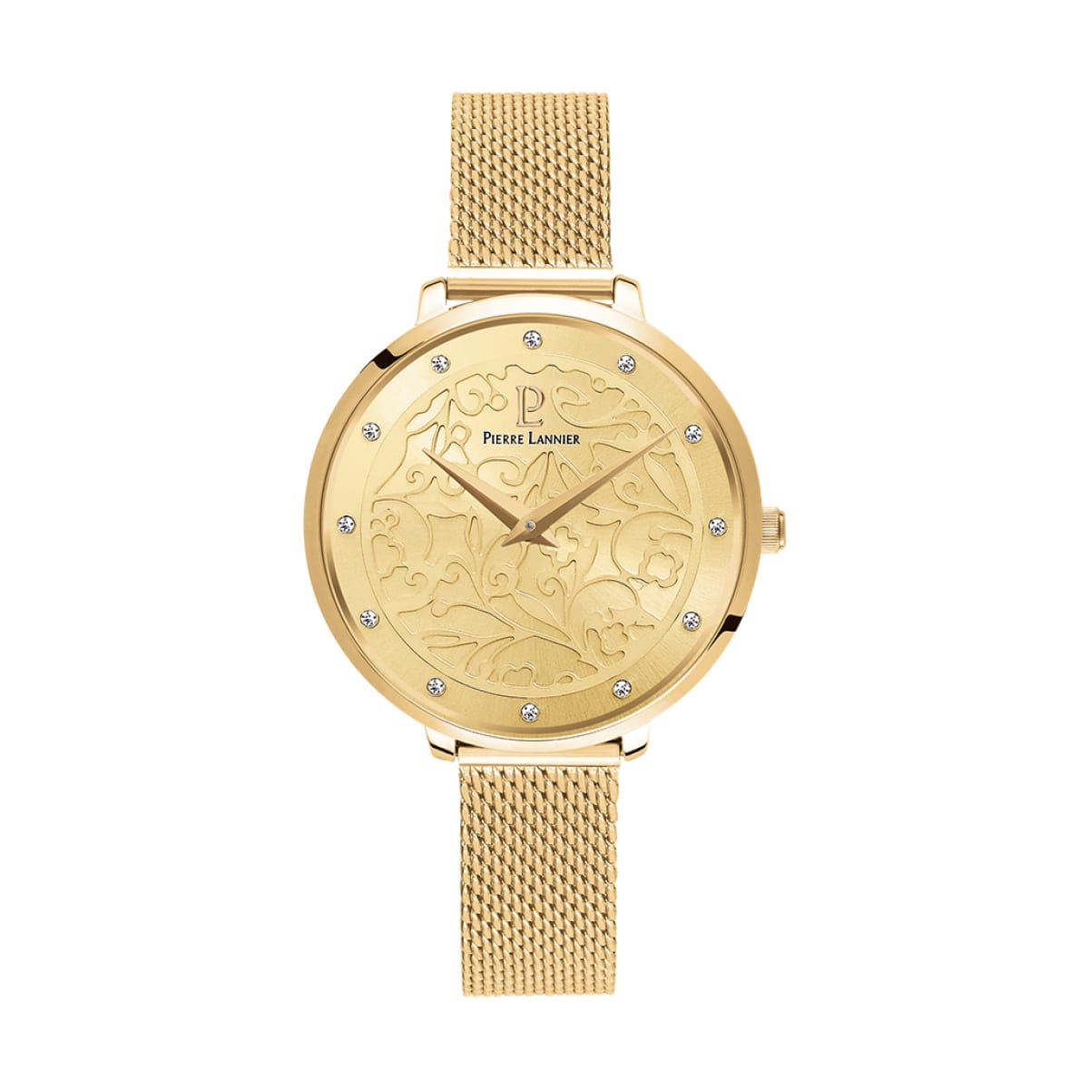 Prix de vente conseilléSuccombez à l’élégance de la montre femme Eolia dorée avec son cadran brodé de fines arabesques et laissez-vous séduire par son éclat !