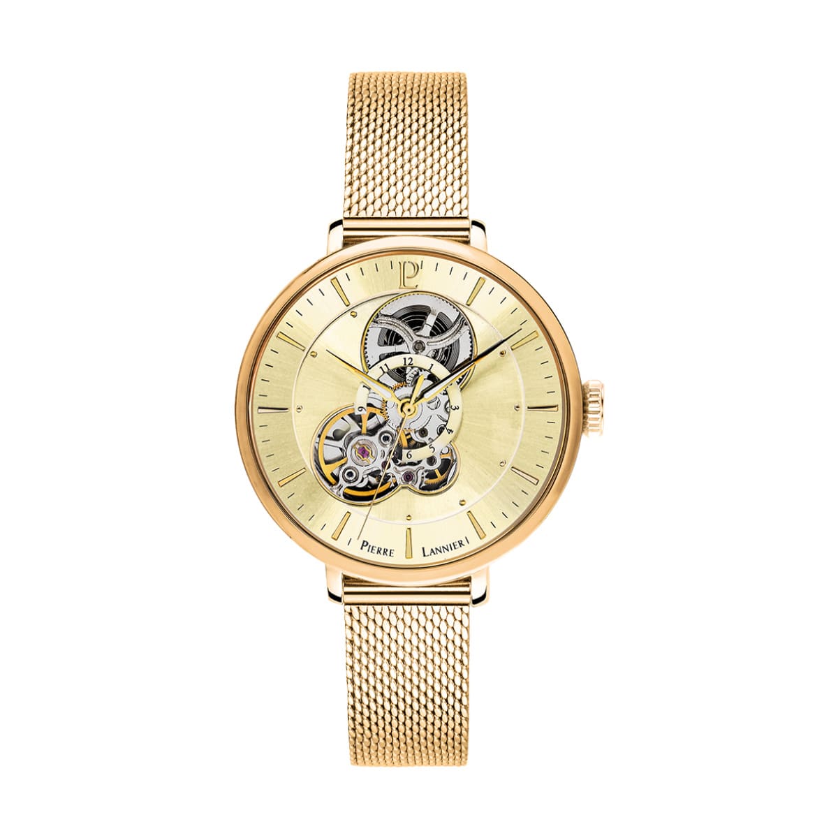 Prix de vente conseilléLa montre Femme Mélodie dorée possède un cadran cœur ouvert et une construction squelette.