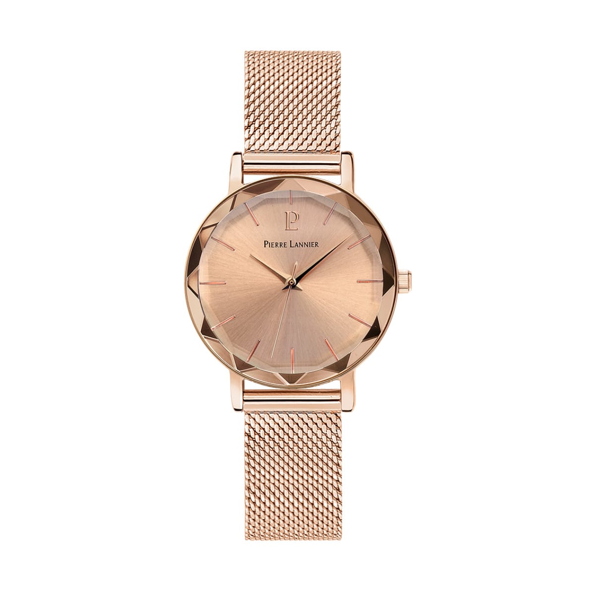 Prix de vente conseilléLumineuse et solaire, la montre femme Multiples acier milanais doré rose possède de nombreux atouts. Craquez pour son verre facetté ultra original ou bien son cadran doré rose à effet soleillé.