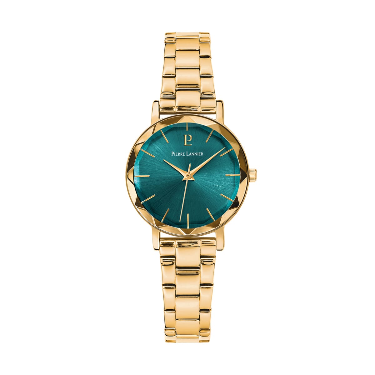 La collection Multiples se décline en plusieurs modèles : découvrez-les et trouvez la montre qui est faite pour vous. La montre femme Multiples 012P562 présente un boîtier rond doré de 30 mm de diamètre, fabriqué en acier inoxydable qui allie résistance et finition brillante. Elle arbore un cadran de couleur vert émeraude, avec un effet soleillé saisissant. Les index et les aiguilles dorés se détachent subtilement sur le cadran, offrant une lecture claire de l'heure. Le verre facetté ajoute un effet de jeu de lumière épatant, rehaussant encore plus l'esthétique globale de la montre. Le bracelet en acier est un choix élégant et polyvalent. Les mailles sont légères et agréables à porter, garantissant un confort optimal tout au long de la journée. L'un des avantages de cette montre est la possibilité d'interchanger le bracelet avec n'importe quel autre bracelet de 14 mm de large. Vous pouvez ainsi personnaliser facilement son look, en optant par exemple pour un bracelet en cuir ou en maille milanaise. En matière de résistance, cette montre femme est étanche jusqu'à 50 mètres, ce qui signifie qu'elle peut résister à la pression de l'eau jusqu'à cette profondeur. Cela vous permet de la porter sans soucis au quotidien, même lorsque vous vous engagez dans des activités de la vie quotidienne susceptibles d'exposer la montre à l'eau. Enfin, pour garantir la qualité de cette montre, elle est couverte par une garantie de 2 ans. Elle vous sera également livrée dans un écrin Pierre Lannier.