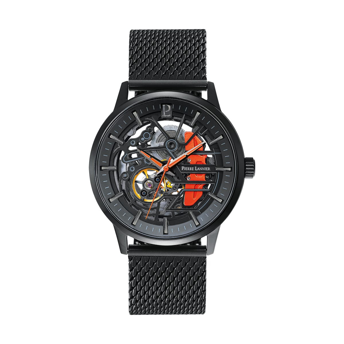 La version de la Montre Homme Essential avec son cadran noir et son bracelet en acier noir est conçue pour être portée facilement au quotidien grâce à son design minimaliste et sophistiqué.